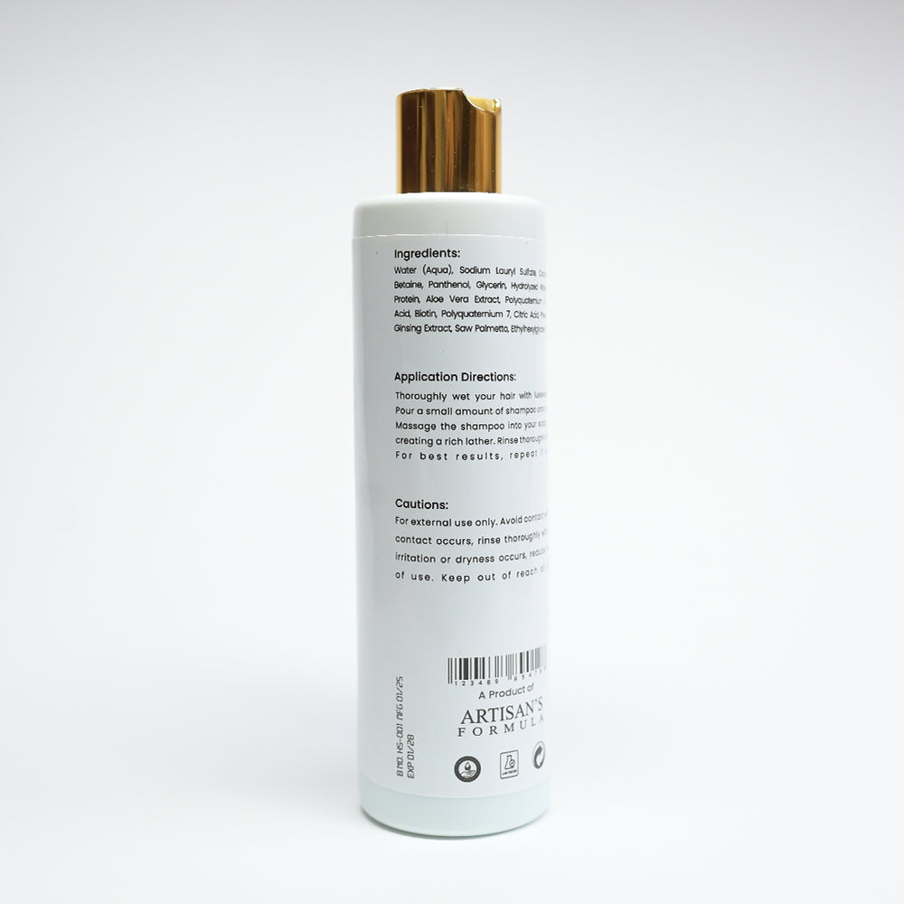 This nourishing shampoo is formulated to strengthen hair, reduce hair fall, and promote healthy hair growth. Biotin and Saw Palmetto help block DHT (a hormone responsible for hair loss), while Caffeine and Panthenol stimulate hair follicles for healthier, thicker hair.